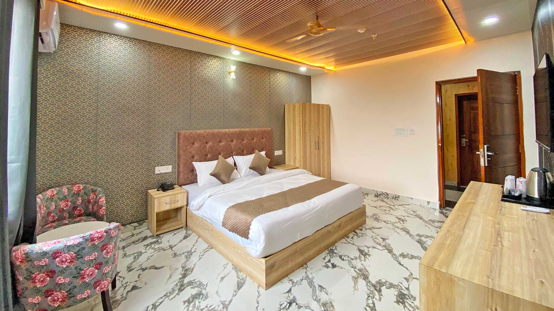 Experience premium comfort in our fully air-conditioned hotel rooms in Rishikesh. Stay cool and relaxed with modern amenities, elegant interiors, and a peaceful environment for every type of traveler.